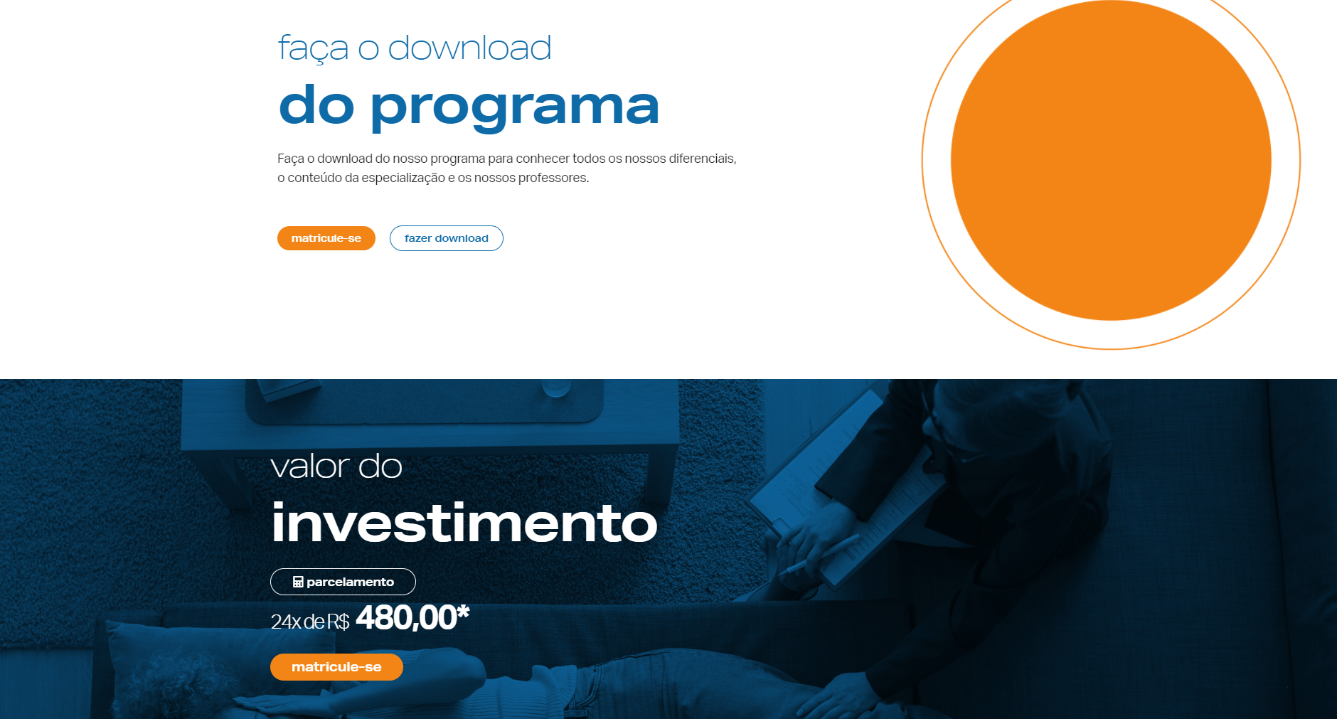 Além da landing page, nós também desenvolvemos o material de divulgação do curso que é disponibilizado para download após o preenchimento de um pequeno cadastro de interesse.