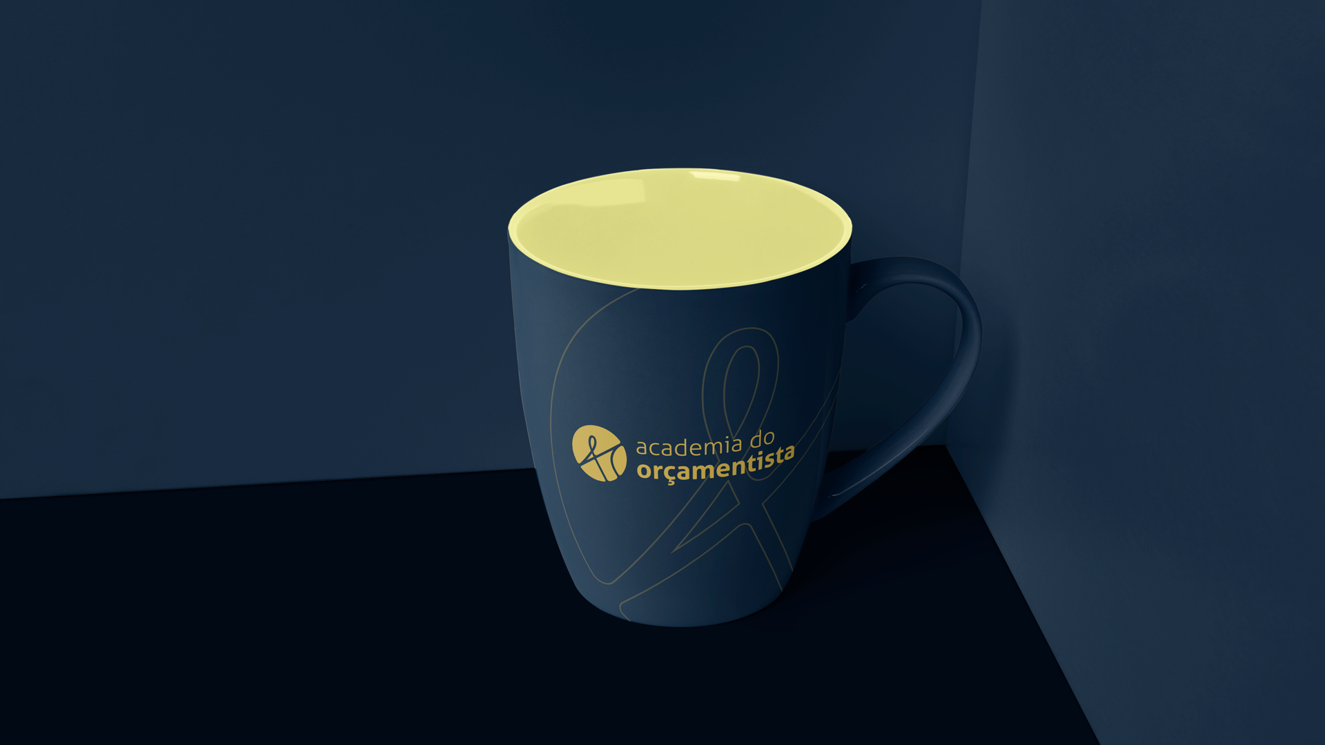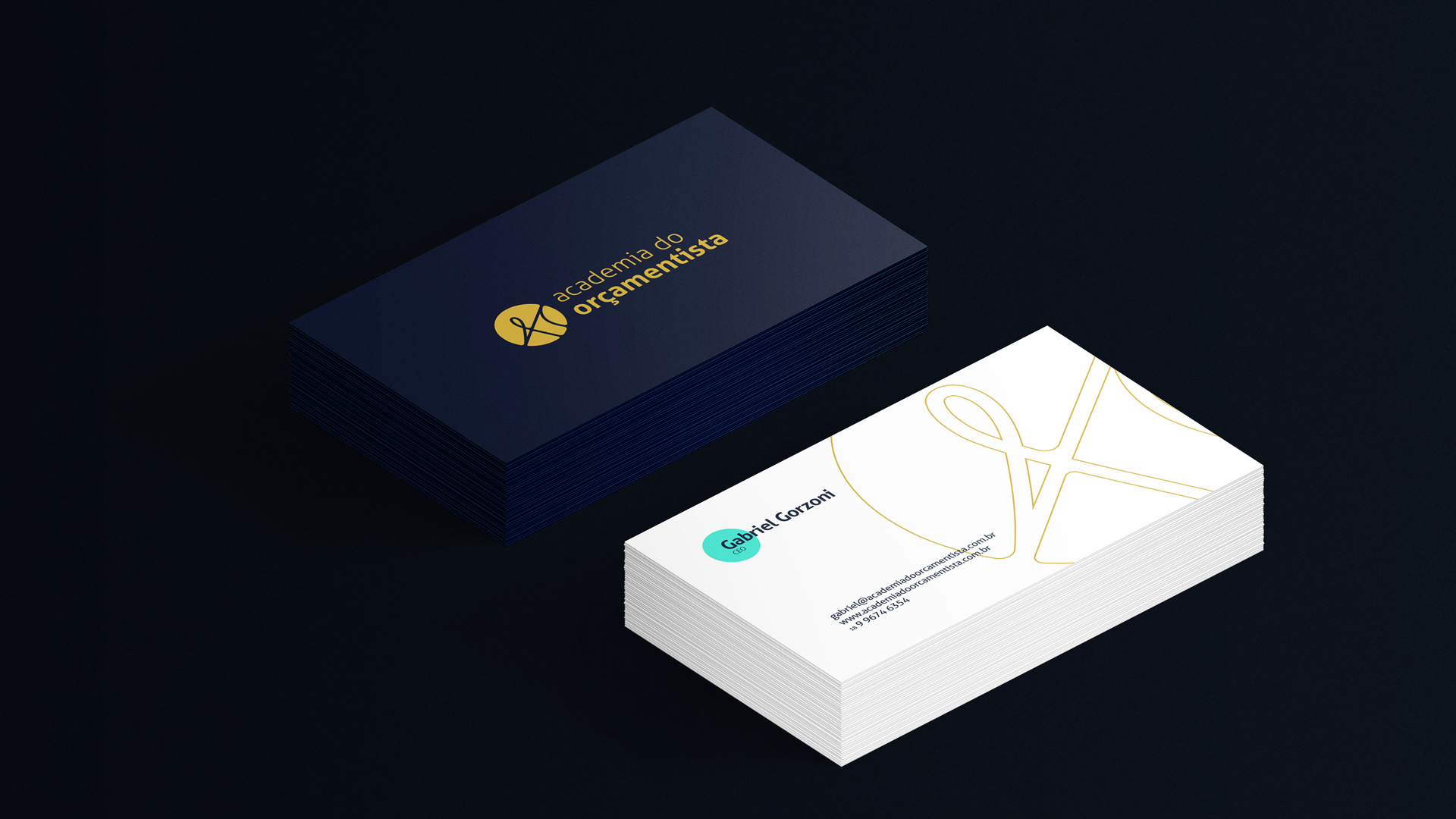 A academia do orçamentista é uma ‘escola’ de aperfeiçoamento em vendas para dentistas. Ao desenvolvermos a marca, procuramos trabalhar com cores e formas que transmitissem a ideia de valorização do mercado, como o dourado e curvas, que nos passam a sensação de refinamento.